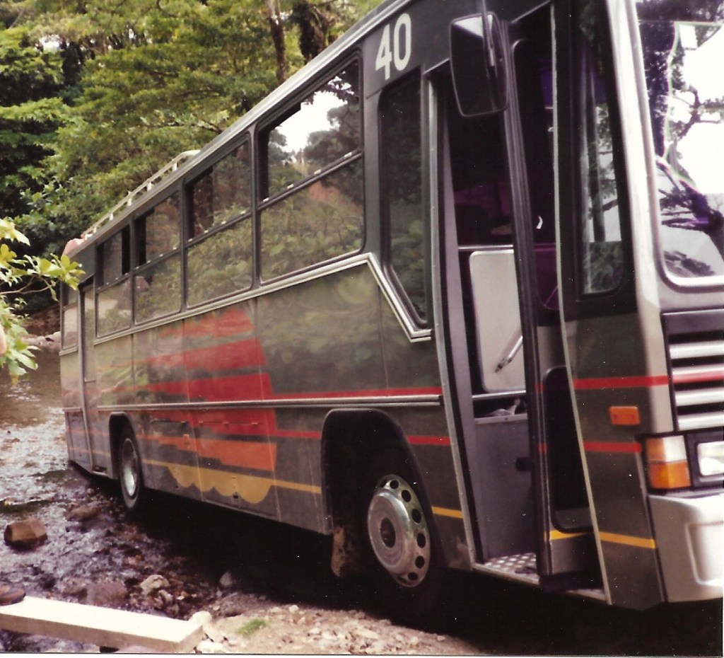 Large portions of the Pan American Highway had not yet been paved, making the ride on Costa Rica’s main thoroughfare a bumpy experience at times. On one afternoon that was hot as hell one of the bus tires blew. The short, thin bus driver asked all of us to leave the bus so he could change the tire. Luckily, Tom could help him change the tire while the tour leader stood next to them with towels wiping the sweat off of each like an operating room nurse attending a surgeon, alternately dousing them with bottled water. The side roads were also sometimes difficult to navigate, resulting in our bus being stuck in a puddle the size of a pond on one occasion.